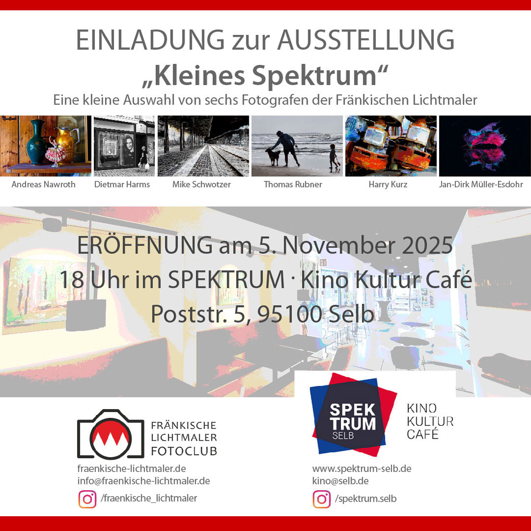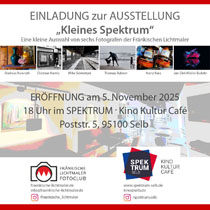 Einige der Fränkischen Lichtmaler, u.a. Jan-Dirk Müller-Esdohr und Harry Kurz, zeigen ihre Fotografien im Kultur-Kino und -Café "Spektrum" in Selb, Poststr. 5.